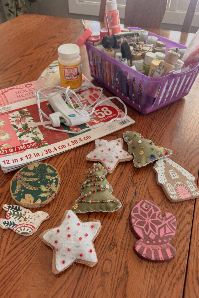 This quiet season post-holidays is a great time to finish (or start) some of those crafts you didn’t have enough time to get to weeks ago. I have been working on these felt ornaments, salt dough ornaments, and wood ornaments off and on since November. Now that the pressure of the holidays is behind me, I feel like I can really sit down and enjoy detailing these ornaments. I have very little experience sewing, but have thoroughly enjoyed learning different stitches and beading techniques. Crafts fall in the “cozy” category because it asks you to be intentional with your time. The gliding of a paintbrush, choosing which beads to sew- it is grounding and good for the soul.